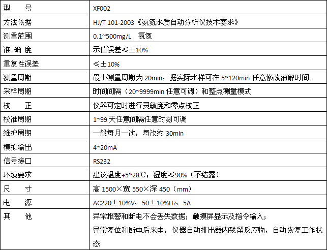 水樣和掩蔽劑混合后,以游離態(tài)的氨或銨離子等形成存在的氨氮,在堿性環(huán)境和增敏劑存在的情況下,與水楊酸顯色試劑反應生成一種帶色絡合物,分析儀檢測此顏色的變化,并把這種變化換算成氨氮值輸出,生成的帶色絡合物量相當于氨含量。